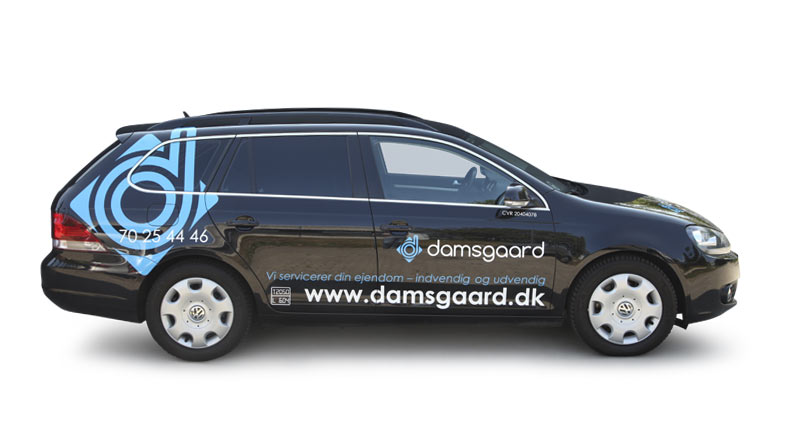 Endnu et eksempel på bilreklame lavet med brug af billede og folietekst for firmaet Dansk Vagt beliggende i Køge. Deres biler køre landsdækkende.
