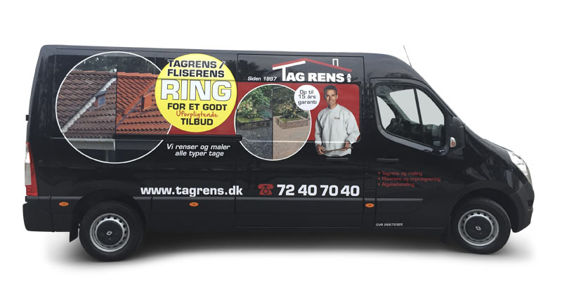 Bilreklame udført som halv-indpakning med folieprint og udskåret bilfolie. Kører i København og Birkerød, Hørsholm, Farum og Rungsted. Bilreklame Type 4/str 3